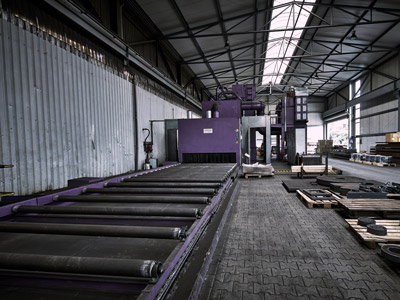 Mit unserer Durchlauf-Strahlanlage bearbeiten wir Werkstücke nach Kundenwunsch (Max. Breite des Werkstückes: 3.200 mm)